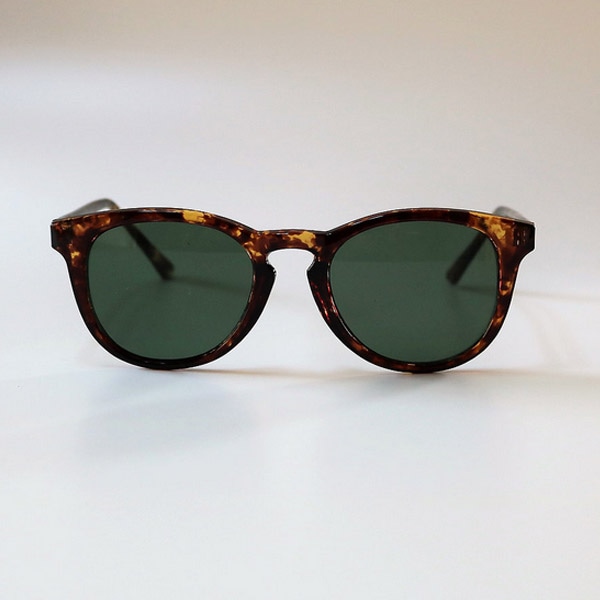 フレームとテンプルが細めですっきりとした印象のボストン型サングラスです。
