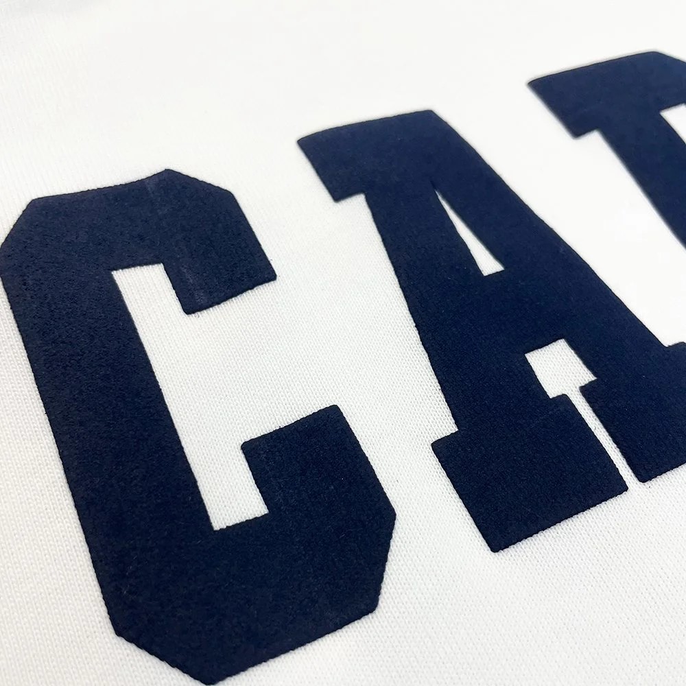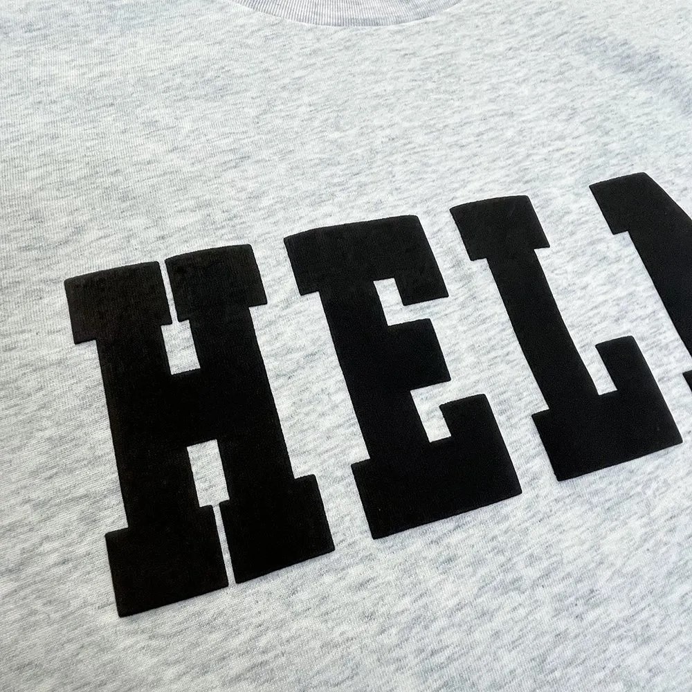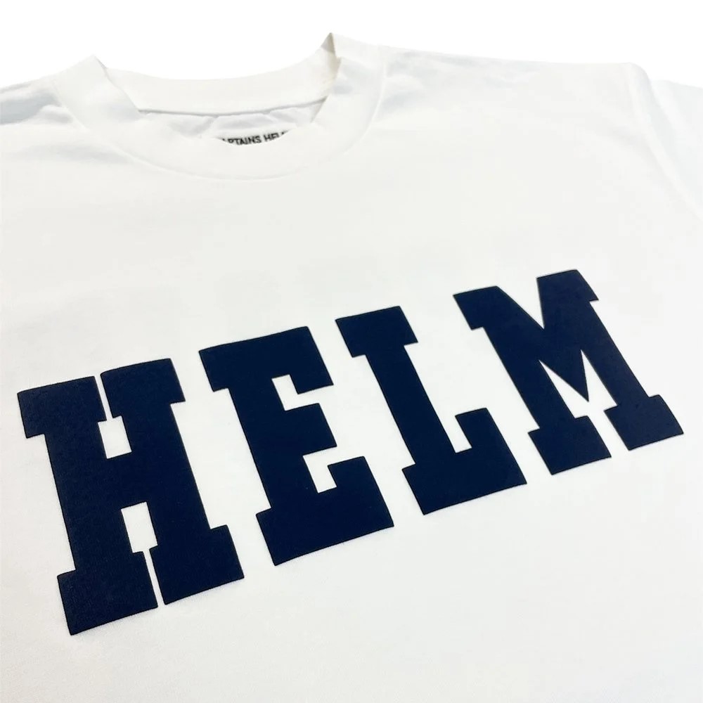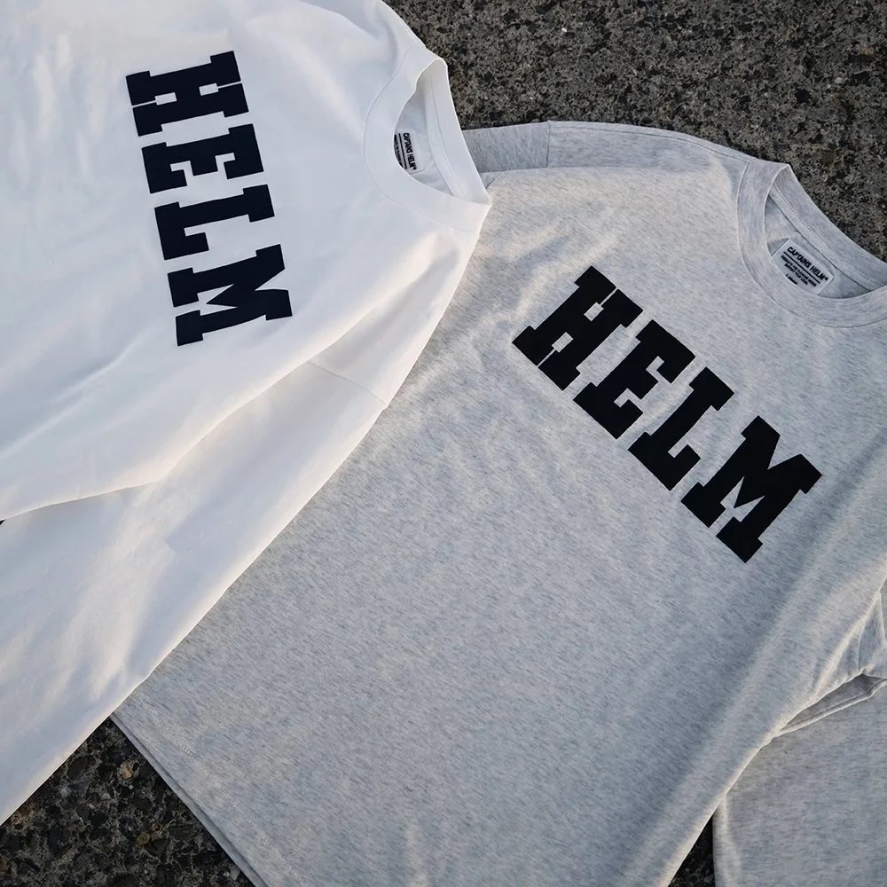 フロント、バックともにHELMロゴを非常に雰囲気の良い微発泡プリントにて施しました。