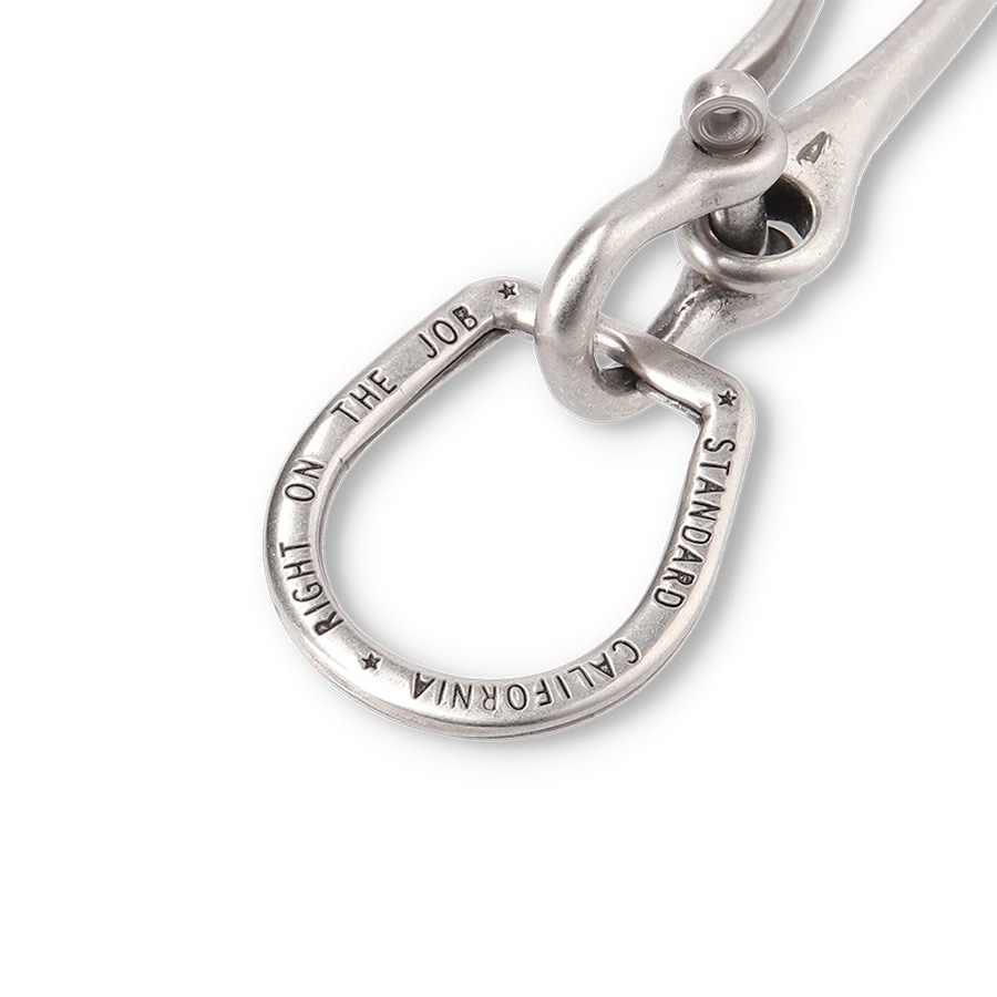 Button Worksオリジナルの真鍮製釣り針型フックに、取り外し可能なシャックルとSDオリジナルの2重リングを組み合わせています。