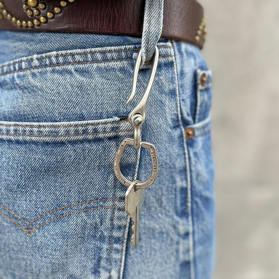 ベルトループに付けて、鍵をポケットにしまうことはもちろん、腰回りのアクセントにぜひ。