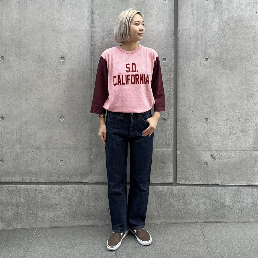 古着のような風合い、経年変化を楽しみたい方にはオススメのベースボールTシャツです。