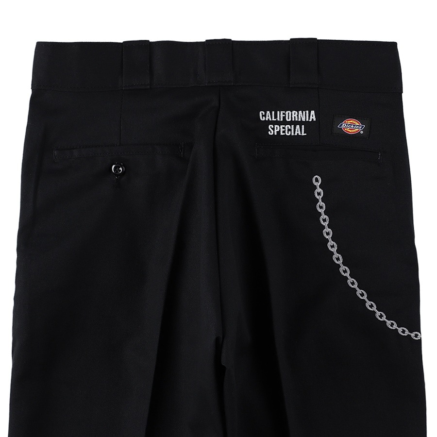 USAラインのディッキーズ874に、バイカーやスケーターのカリフォルニアスタイルをイメージしたウォレットチェーンをモチーフに刺繍で表現したワークパンツ。