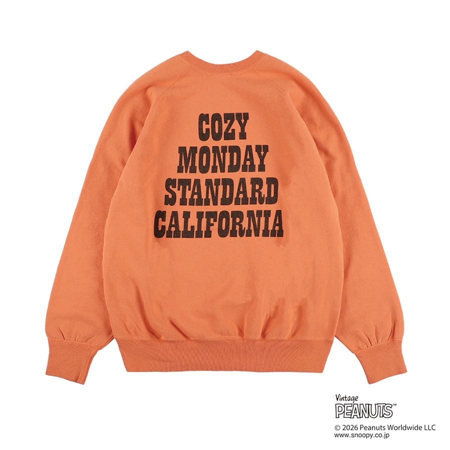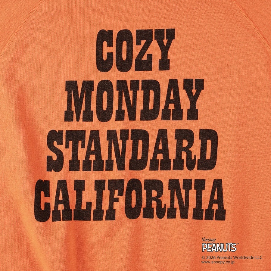 フロントにはStandard California 2026 Spring Summer のシーズンテーマ「Cozy Monday」の雰囲気に合ったSNOOPYアートを、バックにはヴィンテージスウェットをイメージソースにシーズンテーマとSDロゴを配しました。